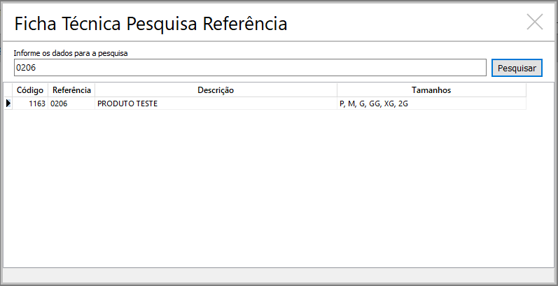 3. Pesquise a referência desejada e selecione-a.