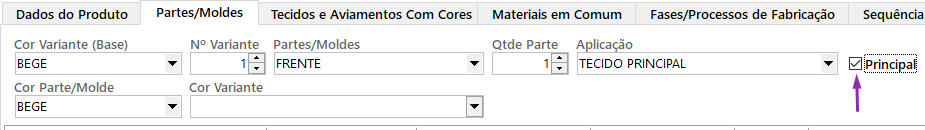 – Principal: marque a caixinha apenas para a parte principal da peça. Só é possível deixar 1 parte como principal por variante.