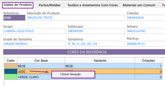 Se a estrutura de tecidos e consumos for igual para todas as variantes, você não precisa cadastrar tudo manualmente em cada cor: