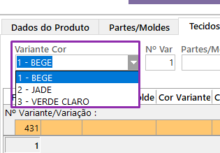 – Nº Variante: indica o número da variante, ou seja, cada cor cadastrada.
