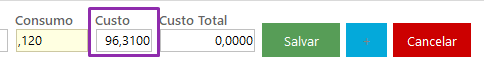 – No campo custo total, o sistema calculará automaticamente Quantidade x Custo, gerando o custo total.