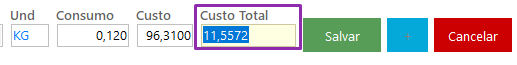 – O custo será trazido automaticamente do cadastro do insumo. Caso não haja custo cadastrado, informe manualmente.