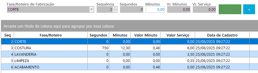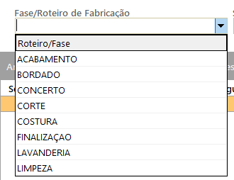 – Selecione a fase/roteiro de fabricação.