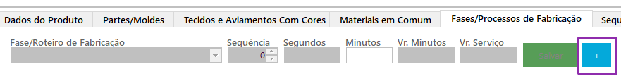 Na aba Fases/Processos de Fabricação, você pode clonar os processos de outra ficha já cadastrada.