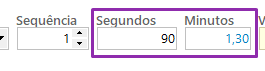 – Informe os tempos de execução (ao preencher o campo de segundos, o sistema calculará automaticamente o valor correspondente em minutos).