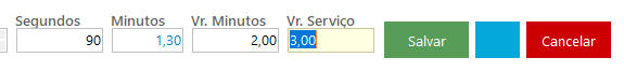– Preencha o campo de valor por minuto (o sistema calculará automaticamente o valor do serviço baseado nos minutos e no valor do minuto).
