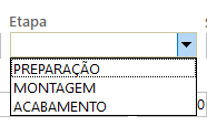 – Etapa: especifica a fase dentro do processo (ex.: preparação, montagem, finalização).