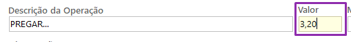 – Valor: custo da operação registrada.
