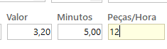 – Peças/Hora: quantidade de peças que podem ser produzidas em uma hora nessa operação.