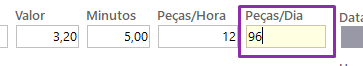 – Peças/Dia: quantidade de peças que podem ser produzidas em um dia nessa operação.