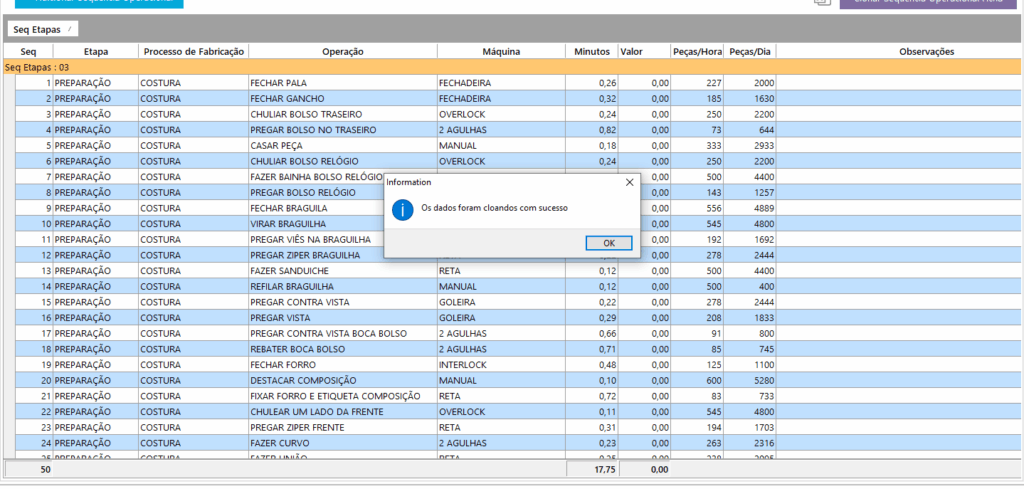 O sistema irá importar automaticamente todos os registros da aba Sequência Operacional da ficha indicada.