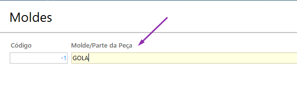1. Acesse o menu Cadastro → Moldes/Partes.