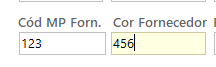 Código MP fornecedor e cor fornecedor.