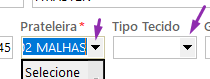 Prateleira e tipo de tecido.