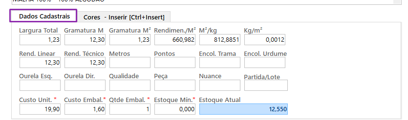 6. Na aba Dados Cadastrais, preencha os campos adicionais necessários para deixar o cadastro completo.