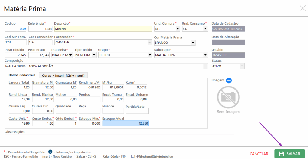 O cadastro de matérias-primas é fundamental para garantir o controle dos insumos utilizados na produção, permitindo organizar informações de referência, fornecedor, cores, composição e localização no estoque.