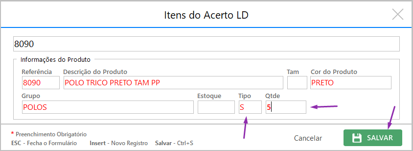 Como fazer acerto de estoque LD?