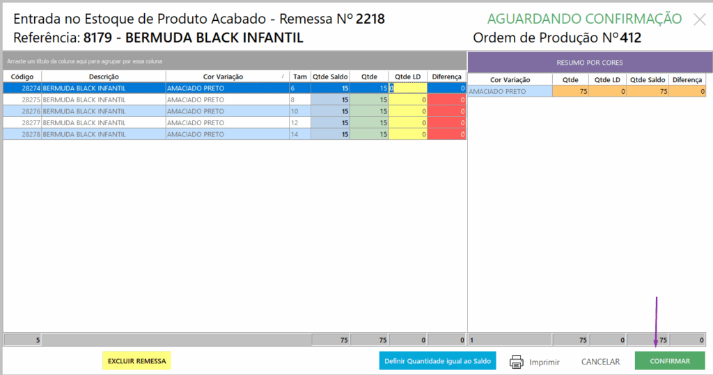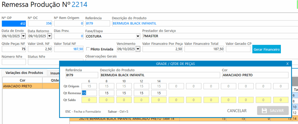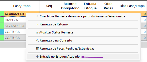 Como movimentar as peças no Controle de Produção?