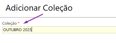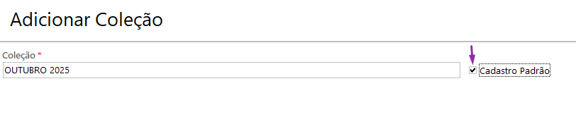 Se marcar como Padrão, todas as vezes que um novo produto for cadastrado, o campo Coleção já virá automaticamente preenchido com essa opção.